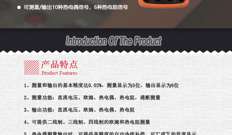 具有高精度測量/輸出熱電偶或熱電阻信號,可滿足現場高精度,高可靠性的溫度設備的調試和校準,并在石油化工、生物制藥、工業自動化、大專院校和科研機構等領域的得到了廣泛的應用。