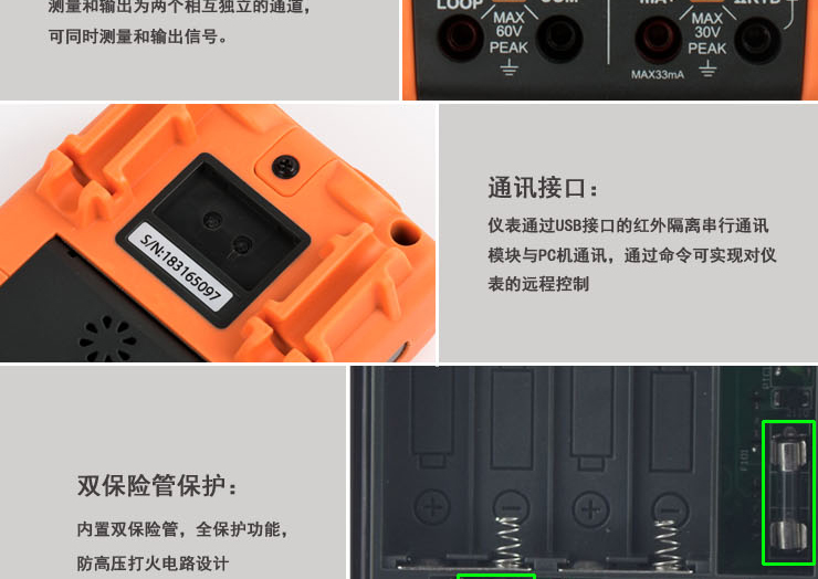 l mA端子最大電流:100mA。 mA端子輸入保護(hù):100mA/250V快熔